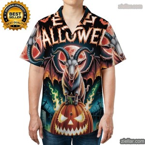 Dämon Ziege Halloween Hawaiihemd mit Kürbismuster und gruseligen Fledermausflügeln