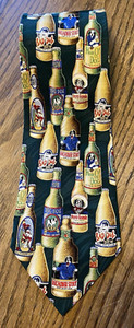 Vintage große Hunde Herren Krawatte 100 % Seide Bierflasche Grafik breit 57"