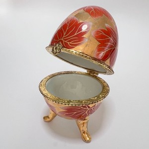 Vintage glasiertes Porzellan bemaltes Ei Schmuck Schmuck Ring Schatulle Dekor 67 g