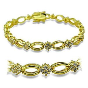 7 Inch Gold Plated Oval Link and Cluster Clear CZ Bracelet