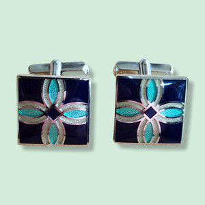 Manschettenknöpfe - echt Ted Baker versilbert blaue Blume Manschettenknöpfe - Made in UK
