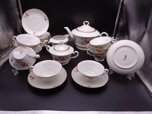 Servizio da Thè in ceramica porcellana Johann Kronester Bavaria Rosa Grigia