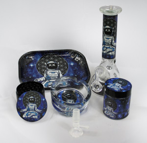 8 Stück Räucherset Grinder Becherglas Tablett Aschenbecher Glas Räucherset Astronaut