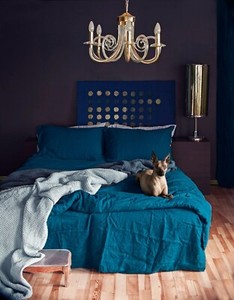 Meerblau Leinen Bettbezug Set Weichheit Leinen Bettbezug mit Kokosnussknöpfen