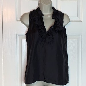 J Crew Women's Black Silk Ruffle Blouse Tank Cami Size 0