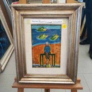 opera di Enrico Baj, disegno a matita su cartone, del 1986