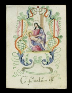 santino MINIATURA PERGAMENA 1700 CONSUMATUM EST-LA PIETA'