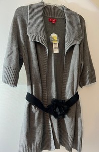 Elle Pullover Damen vorne offen XS meliert grau Gürtel über Ellenbogenärmel Taschen