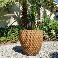 Vintage Mid Century Modern Ätzsteinzeug Übertopf Schale Topf Struktur Braun Keramik