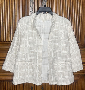 Eileen Fisher Damen Jacke klein cremeweiß strukturiert kariert offene Tasche fließend
