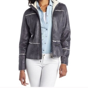 PrAna Damen Esme Moto Jacke grau durchgehender Reißverschluss Lammfell gefüttert Taschen Stehkragen L CHF 40,28
