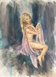 SELTENES ATEMBERAUBENDES ORIGINAL GORDON KING ""Über meiner Schulter"" blondes nacktes Mädchen GEMÄLDE CHF 2.625,58