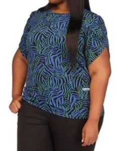Michael Kors Damen 2X Top Schwarz Blau & Grün Abstraktes Print Kurzarm