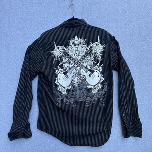 Rock & Roll Cowboy Hemd Herren Medium schwarz Perlen Druckknopf Gitarre Grafik Nadelstreifen CHF 19,89