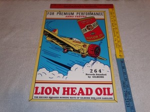 VINTAGE LÖWENKOPF ÖL FLUGZEUG GILMORE 18 PORZELLAN METALL MONARCH BENZINSCHILD