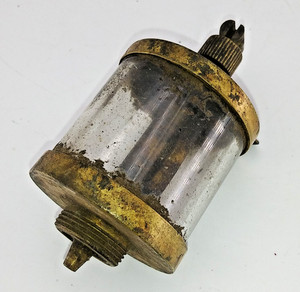 vintage G.B. Essex BRASS CO. Schmierstoffgeber Messing Tropföler Glas