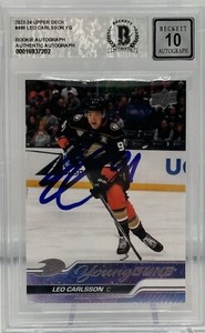 Leo Carlsson signed 2023-24 UD Young Guns RC #468 BAS Rookie Autogramm Grade 10