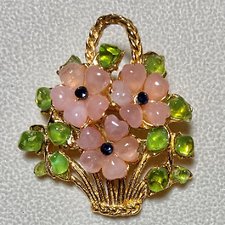 AUTHENTISCHE SWOBODA BLUMENKORB BROSCHE ~ ECHTER RUBIN, JADE ~ SCHÖN!