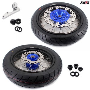 KKE 17" Supermoto Tire Wheels Rims Fit Suzuki DR650SE 1996-2024 Cush Drive Blue