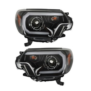 Right+Left Headlights For Toyota Tacoma 2012-2015 Halogen w/ LED DRL Black Bezel