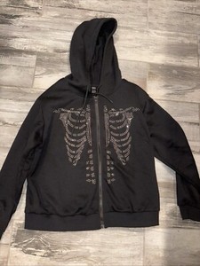 Skeleton Bones Jewels Bling Damen Hoodie Nieten Rippen Gr. XL schwarz Reißverschluss