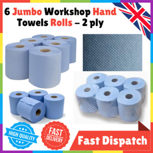 6 x Jumbo Werkstatt Handtücher Rollen - 2 lagig Mittelzuführung Papierrollen zum Reinigen