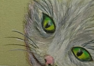 Aceo graue Katze mit grünen Augen Nahaufnahme Buntstift