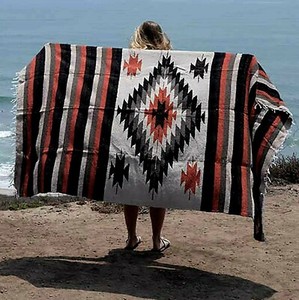 Mexikanische Decke neuwertig Pfirsich schwarz Serape Throw mexikanisches Yoga Boho falsche Decke XL CHF 12,01
