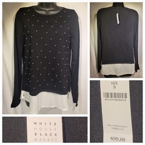 White House Black Market Damen Argyle Perlen-Design L/S Top Bluse Small