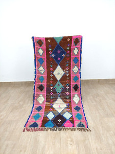 Vintage marokkanischer Berber rosa Teppich 2x5 bunter geometrischer Boujaad Boho Läufer Teppich