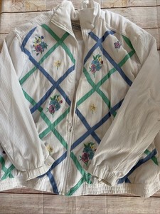 Alfred Dunner bestickte Damenjacke Größe 18 durchgehender Reißverschluss weiß geblümt