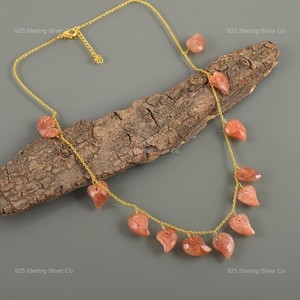 Erdbeere Quarz Stein Perlen Halloween Geschenk Halskette Gelbgold Finish Silber