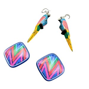 Vintage Ohrring Konvolut: 80er Statement Ohrstecker tropischer Papagei bunt