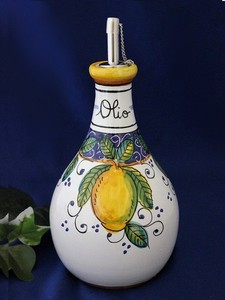 Italian Pottery Lemon Scroll Handled Olive Oil Bottle Made In Italy 18 oz