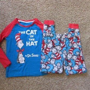 Neu ohne Etikett Dr. Seuss Katze mit Mütze Pyjama Unisex Kinder 12/14 Large Baumwolle 2-teiliges Set CHF 10,12
