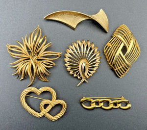 Vintage Pin Lot sechs goldfarbene Metallpins Monet Trifari neu alle ansehen signiert