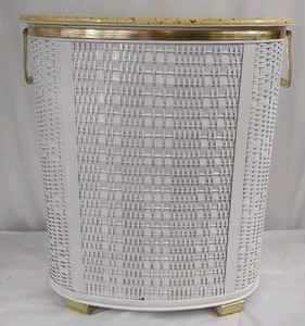 Vintage Mid Century Perldocht Wäschekorb weiß Korbgeflecht