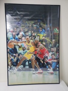 NBA Kobe Bryant vs. Michael Jordan Foto/Druck auf Nylon Leinwand 24" x 36" gerahmt