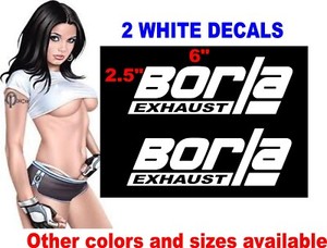 BORLA EXHAUST DECALS Marine grade WHITE 2 EACH other colors and sizes available