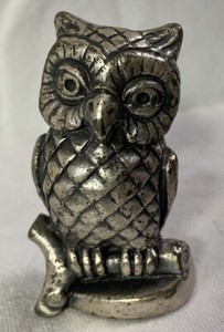 Vintage 1977 Hallmark Little Gallery ~ feiner Zinn ~ Eule auf Ast sitzen