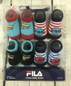 FILA 4 PACK BABY BOY SOCKS 0-6 MONTHS/ MULTI-COLORED
