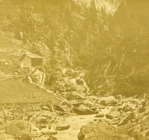 France Plombieres bridge over the stream Old Half-Stereo Photo Valecke 1865