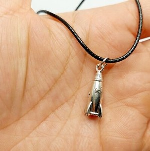 Rocketship charm necklace- faux leather 18 inch cord- US seller