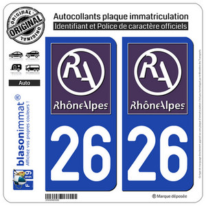 2 Stickers autocollant plaque immatriculation : 26 Rhone Alpes LogoType II