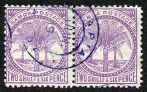 SAMOA SG26 1886 Palmen 2s6d rötlich flieder wmk 4a perf 12,5 fein gebraucht PAAR