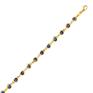 14K Massiv Gelbgold Mehrfarbig Armband des bösen Blicks - Glück Charm Kettenglied CHF 282,26Bisher: CHF 403,23
