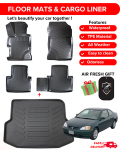 Floor Mats + Cargo Trunk Liner for Honda Civic 2006-2011 Sedan 3D Black Set