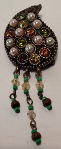 Vintage mehrfarbige Stein Messing Blatt Anstecknadel Brosche 1,5" hängende Perle Kunstperle CHF 0,790 Gebote6T 11Std 30 Min