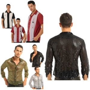 Herren Glänzende Pailletten Hemden Langarm Button Down Hemd Disco Oberteil Party Kostüm CHF 14,63 bis CHF 15,30Bisher: CHF 15,90