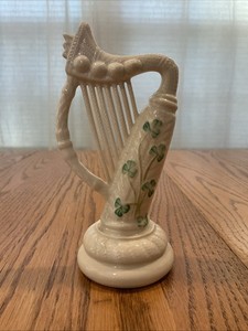Belleek irische Keramik Harfe mit Kleeblatt 6 1/4" Goldmarke 7.